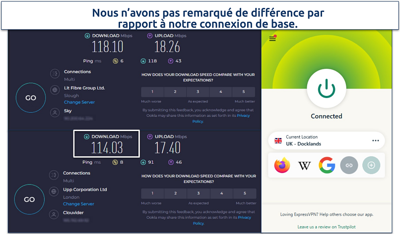 Les serveurs locaux sont rapides : lors de nos tests, nous n’avons perdu que 7 % de la vitesse de base lorsque nous étions connectés à un serveur à proximité. Les vitesses sur les serveurs éloignés ne sont pas aussi impressionnantes : nous avons subi une perte de vitesse de 45 % sur une connexion à plusieurs dizaines de milliers de kilomètres. Nous avons pu naviguer sans problème sur ces serveurs éloignés, mais il fallait quelques minutes pour que les sites Web se chargent complètement.