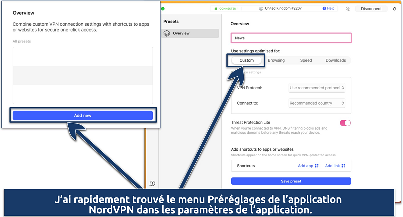 4. NordVPN — Définissez des préréglages en un clic pour vos applications et sites Mac préférés
