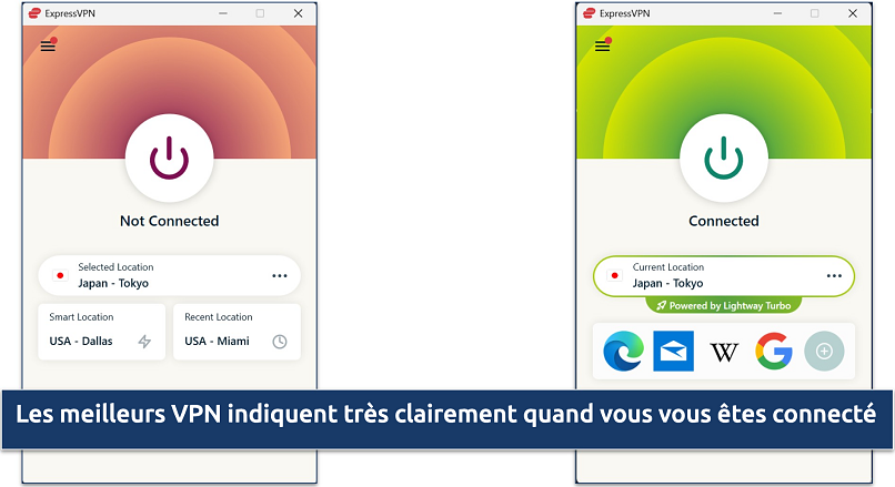Quelques minutes suffisent pour obtenir l’adresse IP d’un autre pays avec un VPN. Nous recommandons un VPN haut de gamme, car il vous permet de déterminer avec plus de précision votre nouvelle adresse IP et de chiffrer votre connexion sans compromettre la vitesse. 24 % des personnes utilisent des VPN pour accéder à des contenus provenant d’autres pays (Forbes, 2025)2, vous n’êtes donc pas le seul.