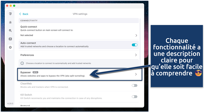 Meilleure fonctionnalité Le protocole Lightway offre d’excellentes vitesses et performances sur les appareils Apple.