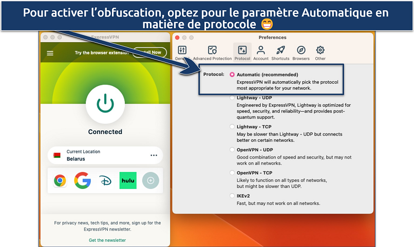 Fonctionnalité phare | L’obfuscation automatique masque votre trafic VPN afin d’empêcher sa détection |