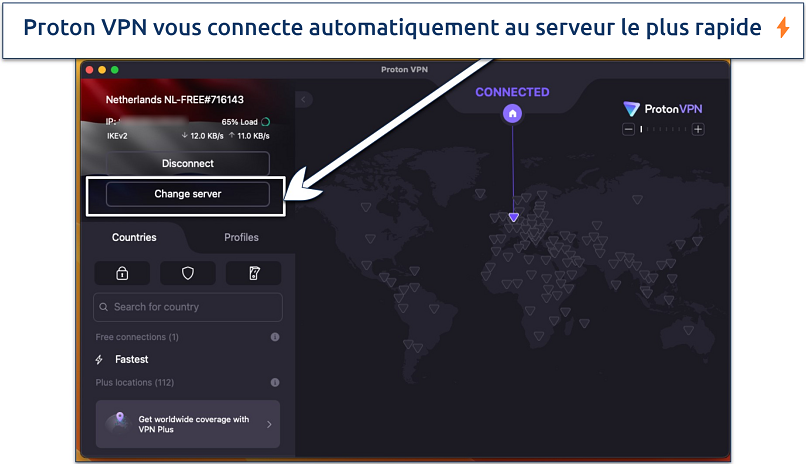 Même si la version gratuite permet d’accéder à 5 localisations serveur, vous ne pourrez pas choisir le serveur auquel vous vous connectez. Ces serveurs étant répartis entre les États-Unis, les Pays-Bas, la Pologne, le Japon et la Roumanie, vous avez donc de bonnes chances d’obtenir une connexion proche de la Russie. Les débits de Proton VPN étaient excellents sur les serveurs auxquels nous nous sommes connectés. Sur son serveur situé en Pologne, ils ont chuté de seulement 15 %.