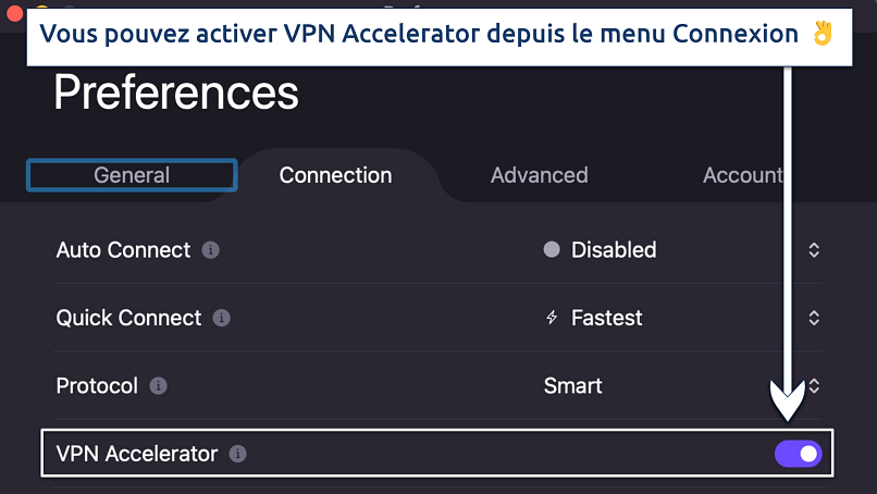 Meilleure fonctionnalité | La fonction VPN Accelerator vous permet d'augmenter la vitesse de connexion des ports en un clic |